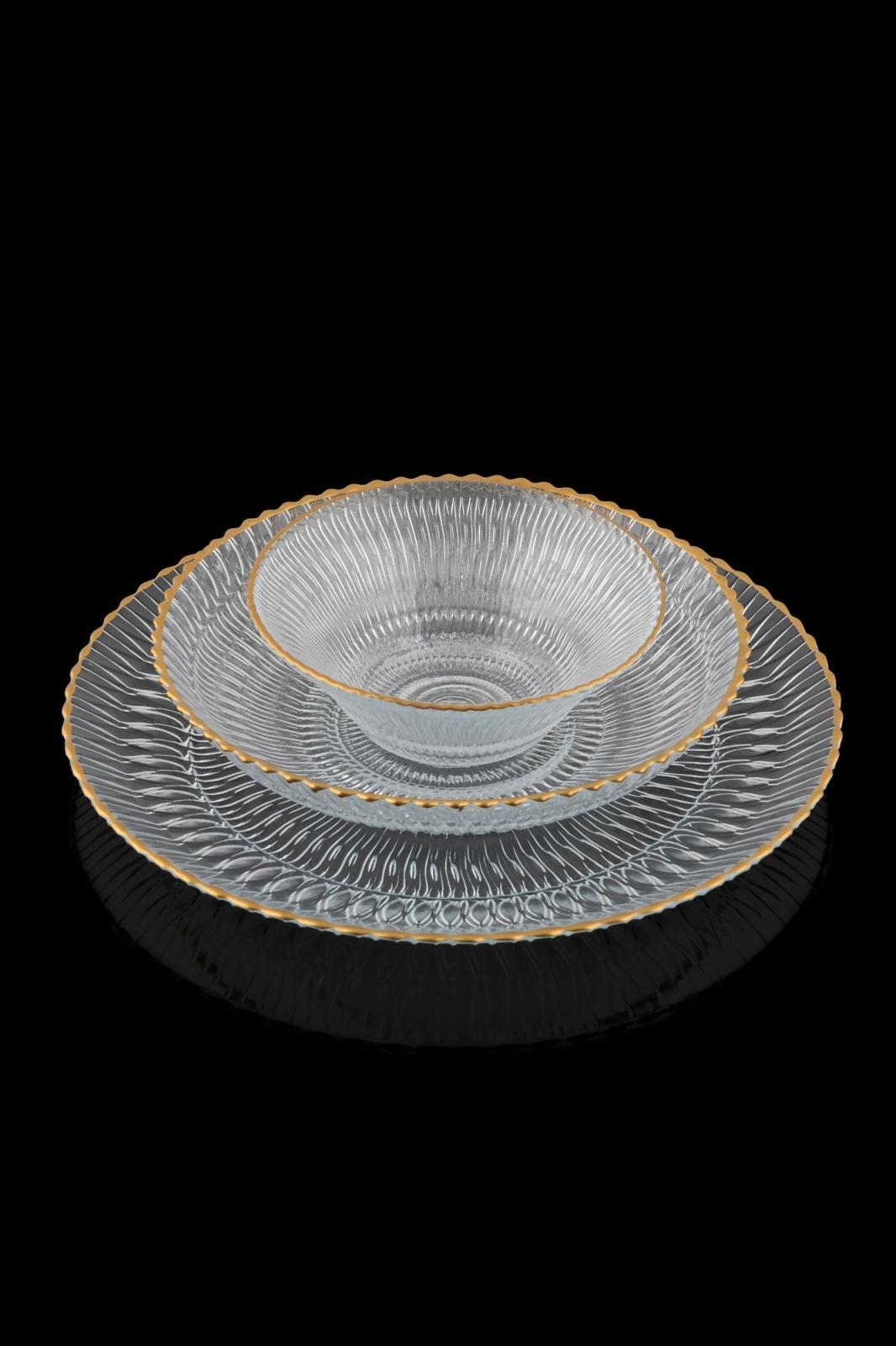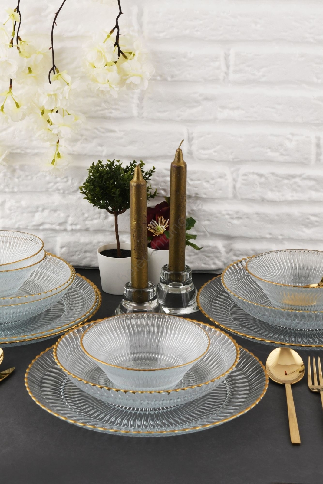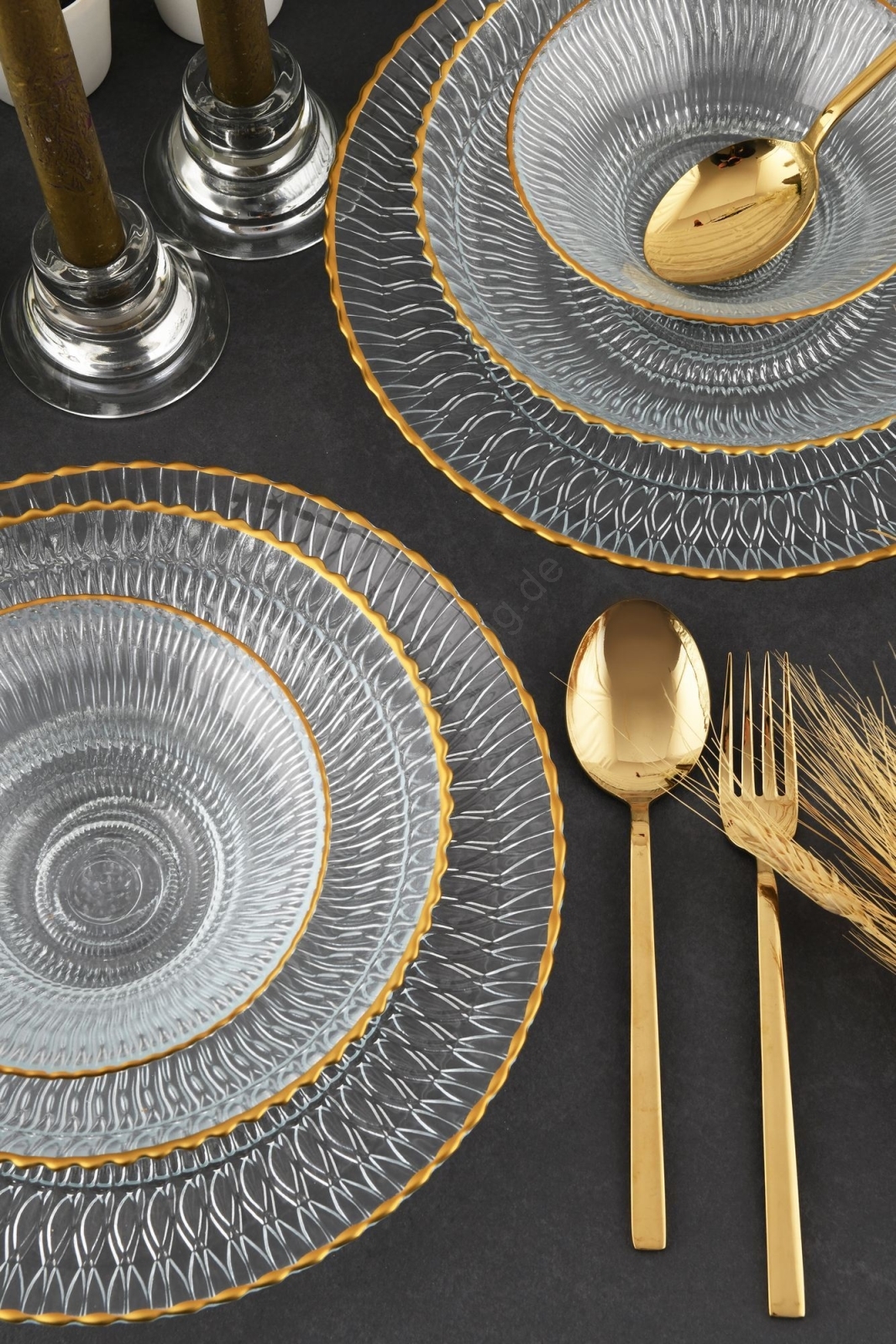 12-teiliges Ess-Set, transparent/goldfarben, aus Glas
