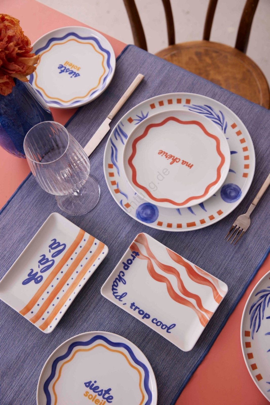 12-teiliges Geschirrset aus Porzellan, rot/blau/weiß