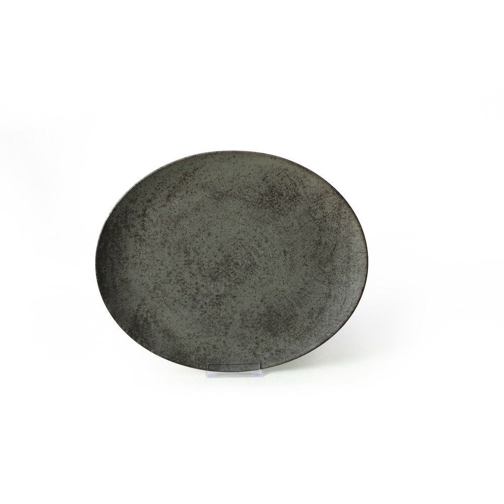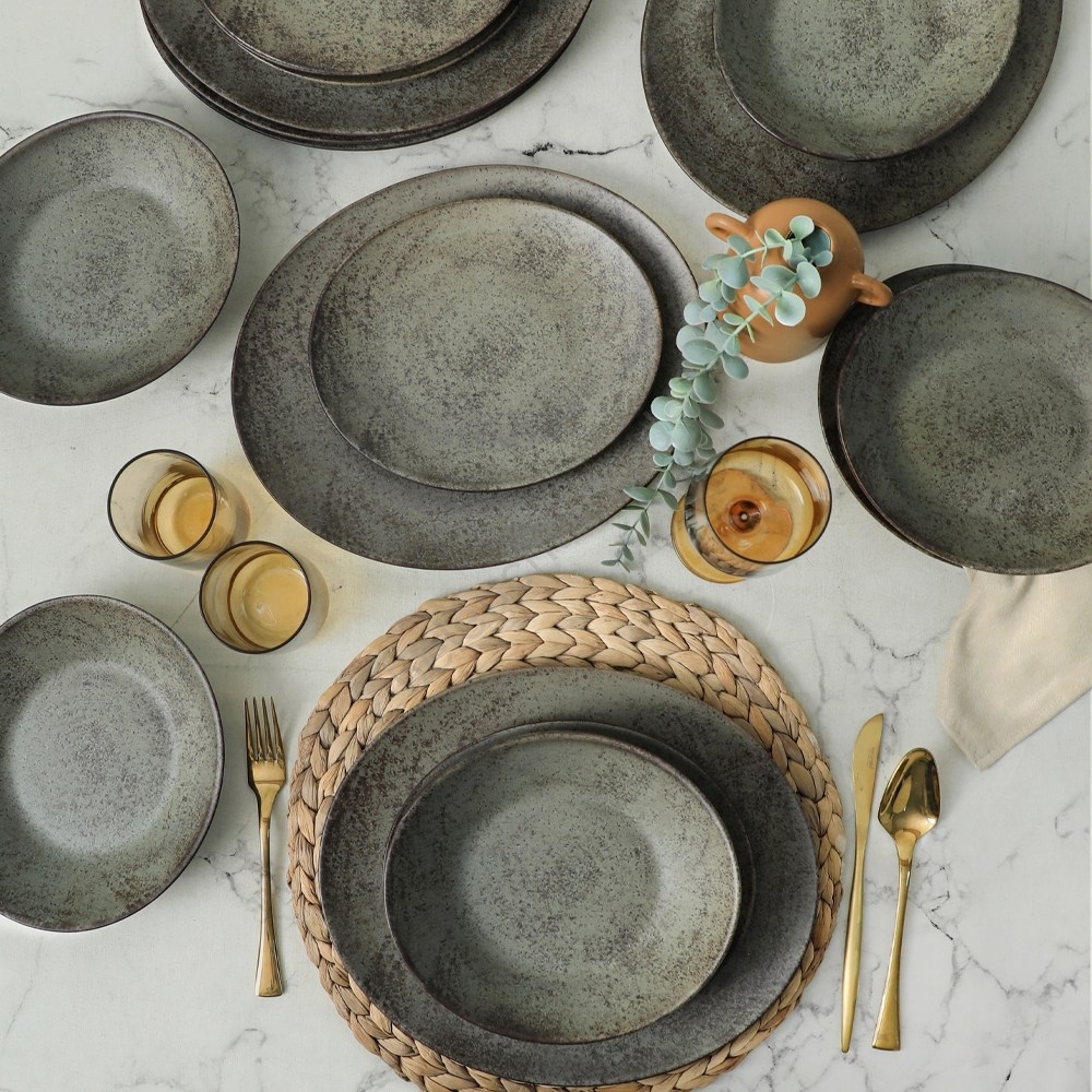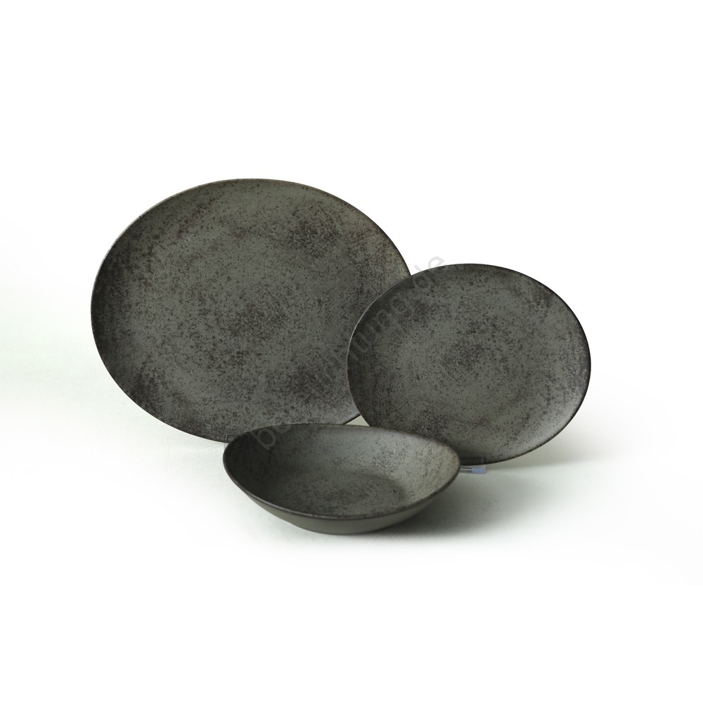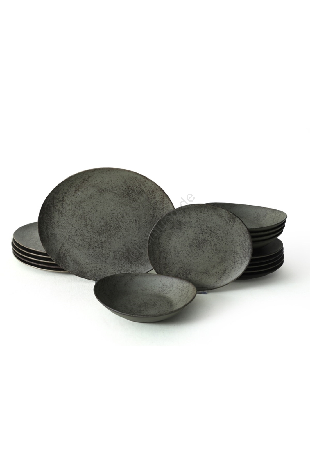 18-teiliges Geschirrset, Anthrazit/Grün, aus Steingut