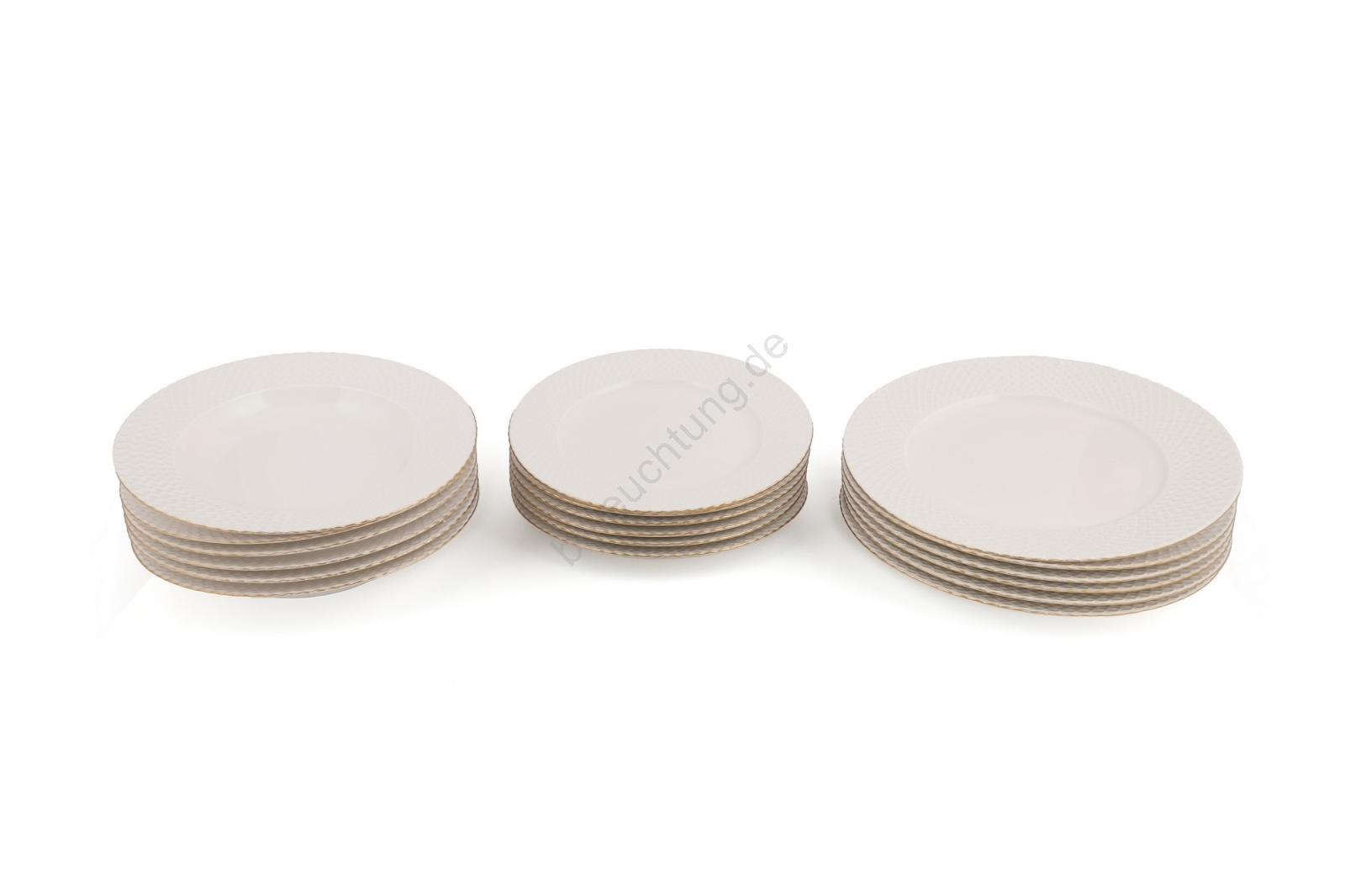 18-teiliges Porzellan-Geschirrset, weiß/gold