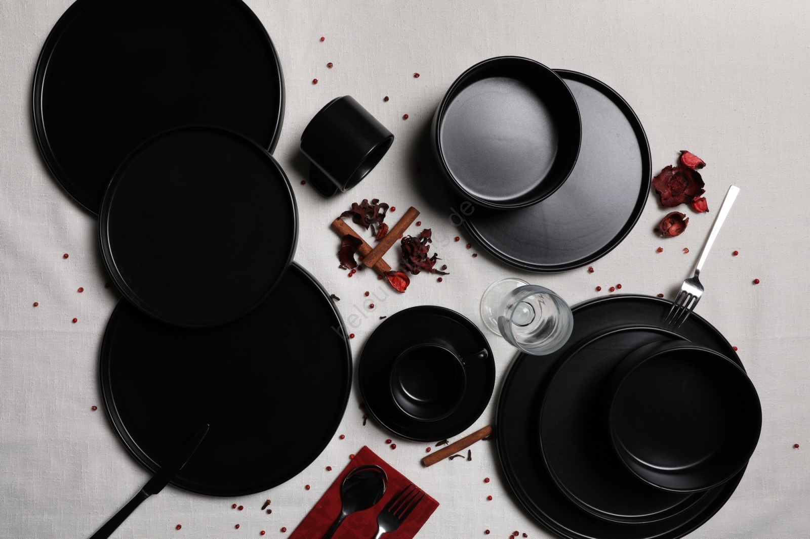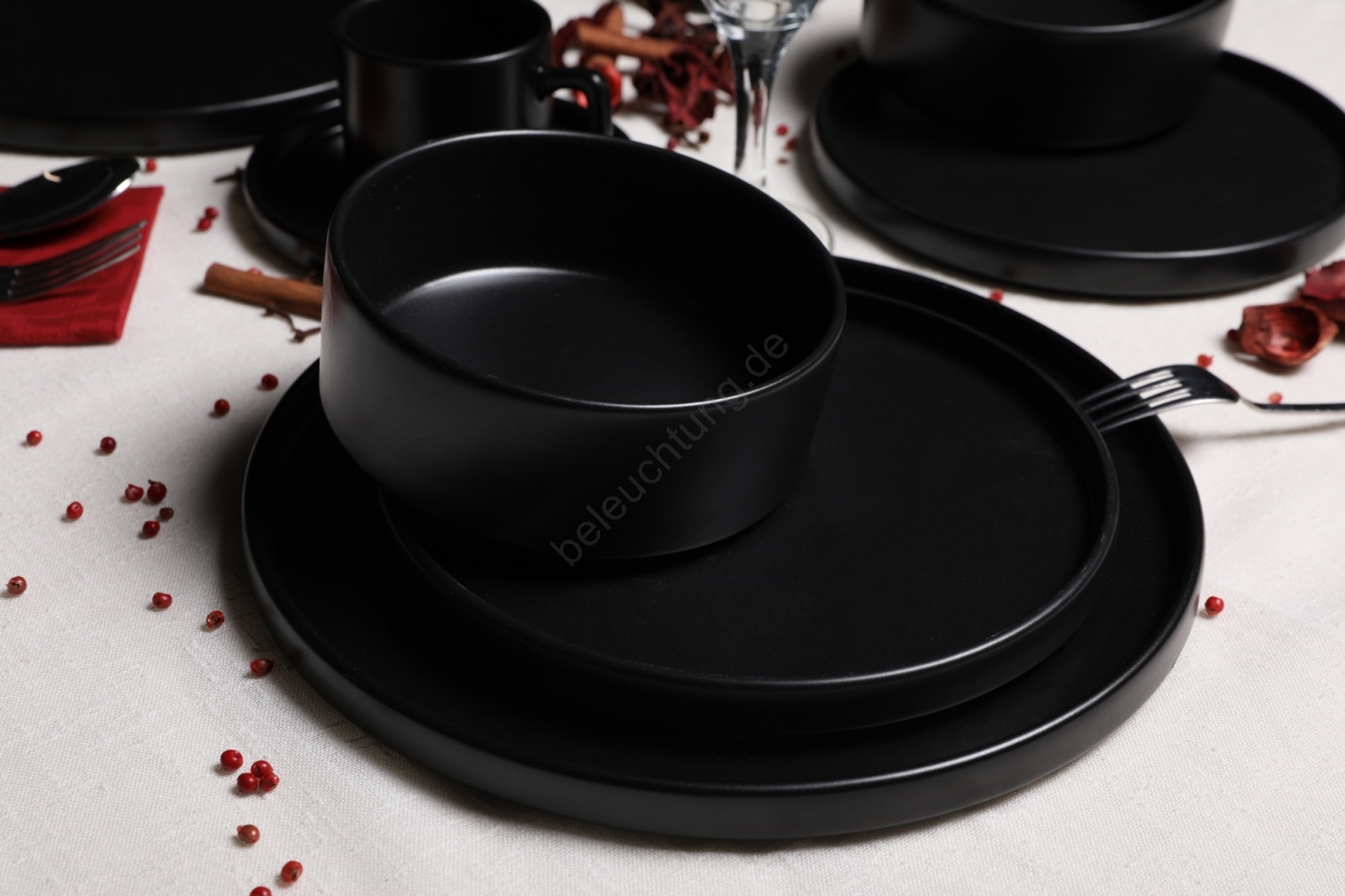 20-teiliges Tafelservice, schwarz/Steingut