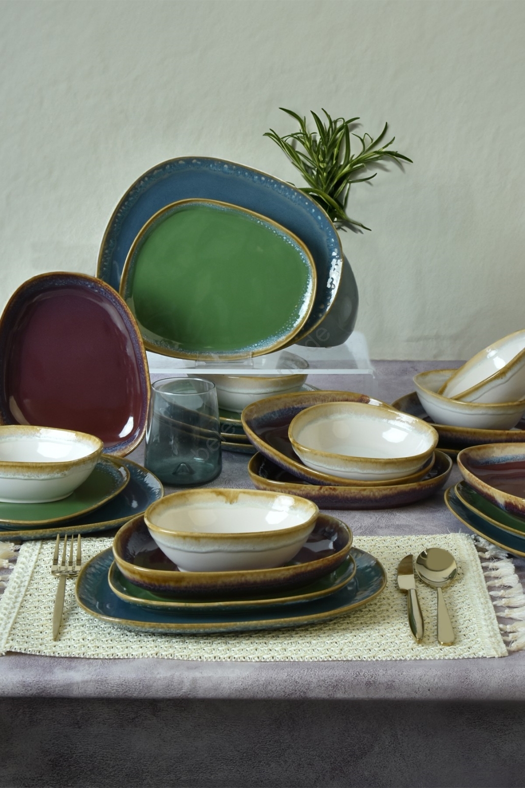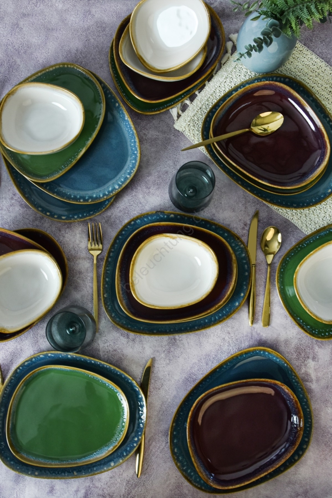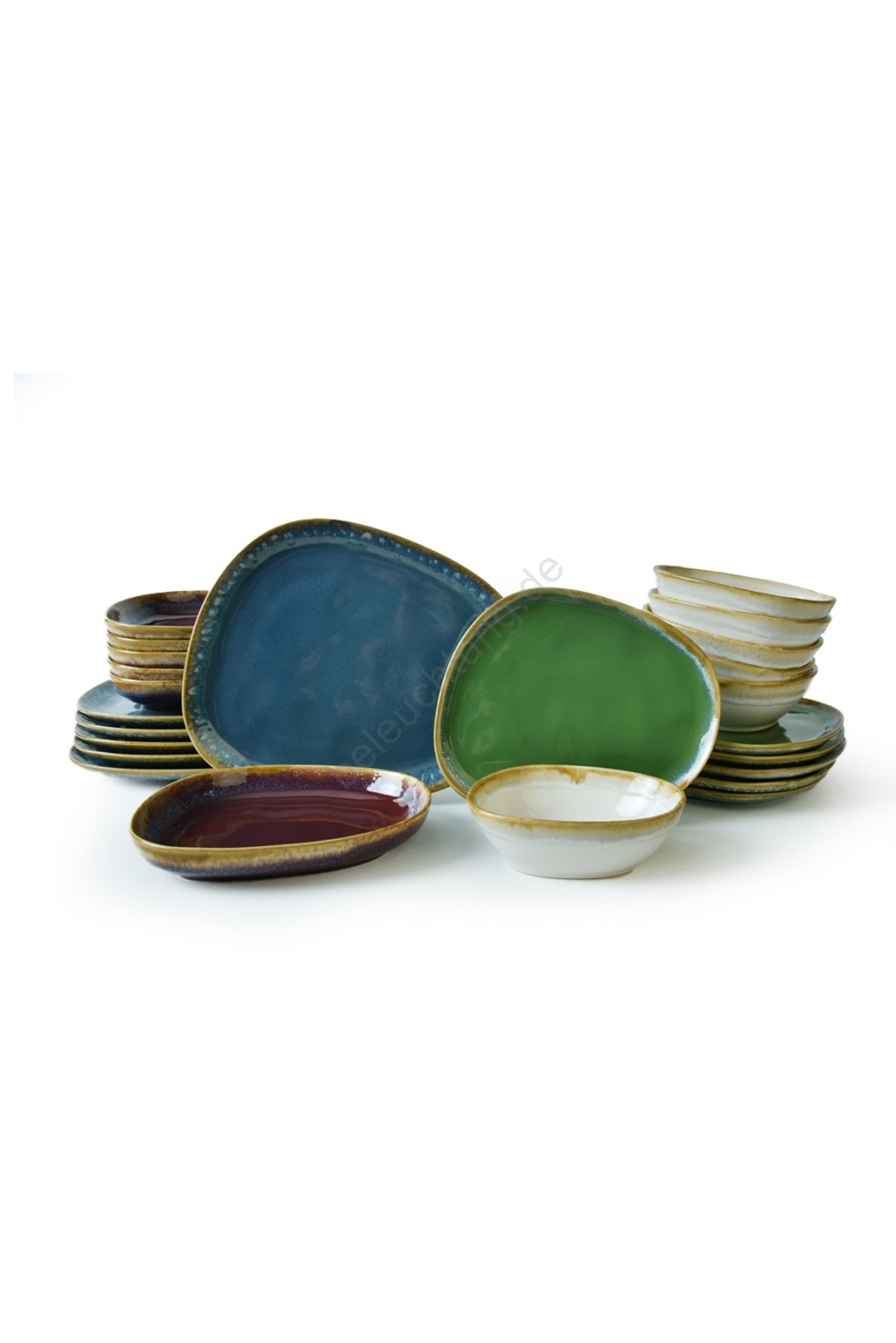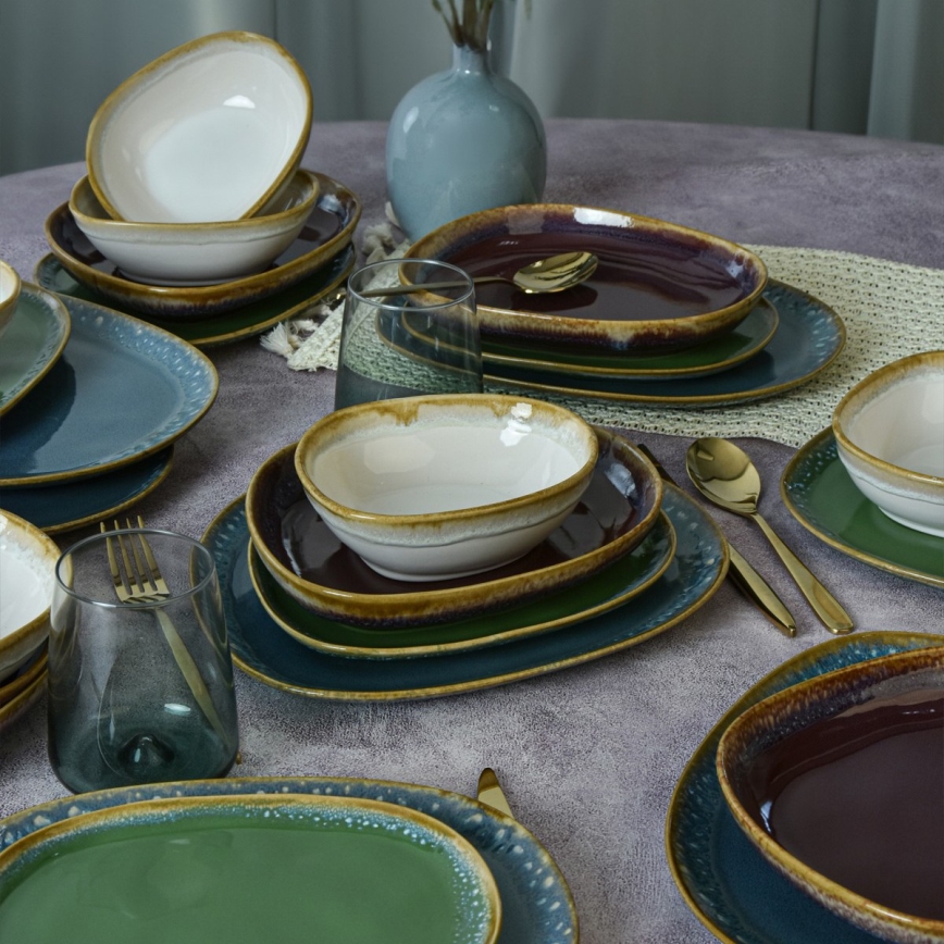 24-teiliges, farbenfrohes Geschirrset aus Steinzeug