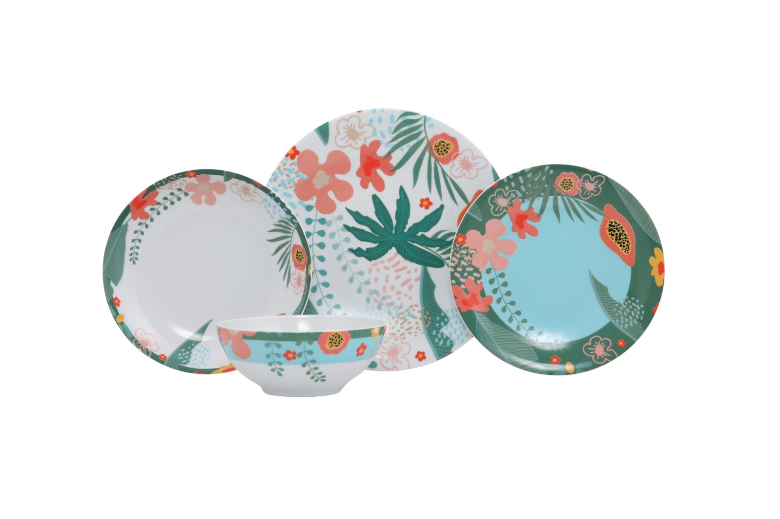 24-teiliges, farbenfrohes Porzellan-Geschirrset