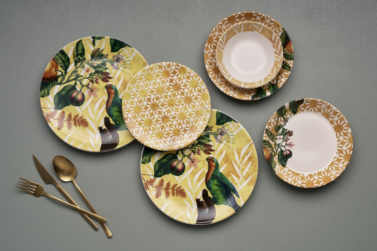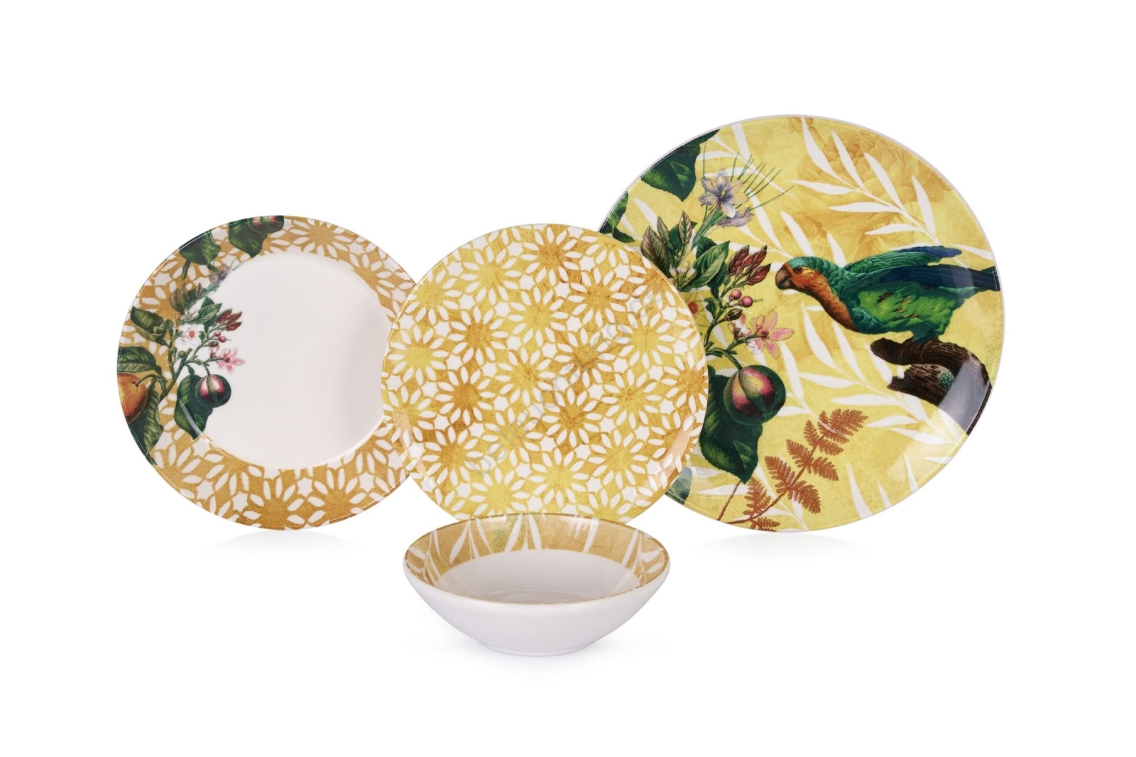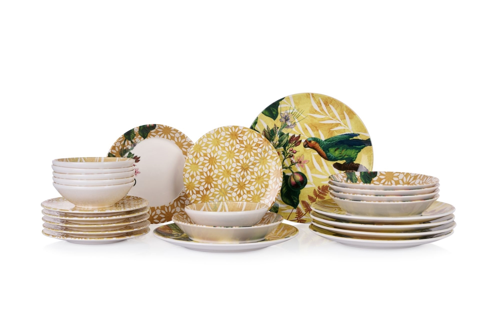 24-teiliges Geschirrset, gelb/grün/weiß, Keramik
