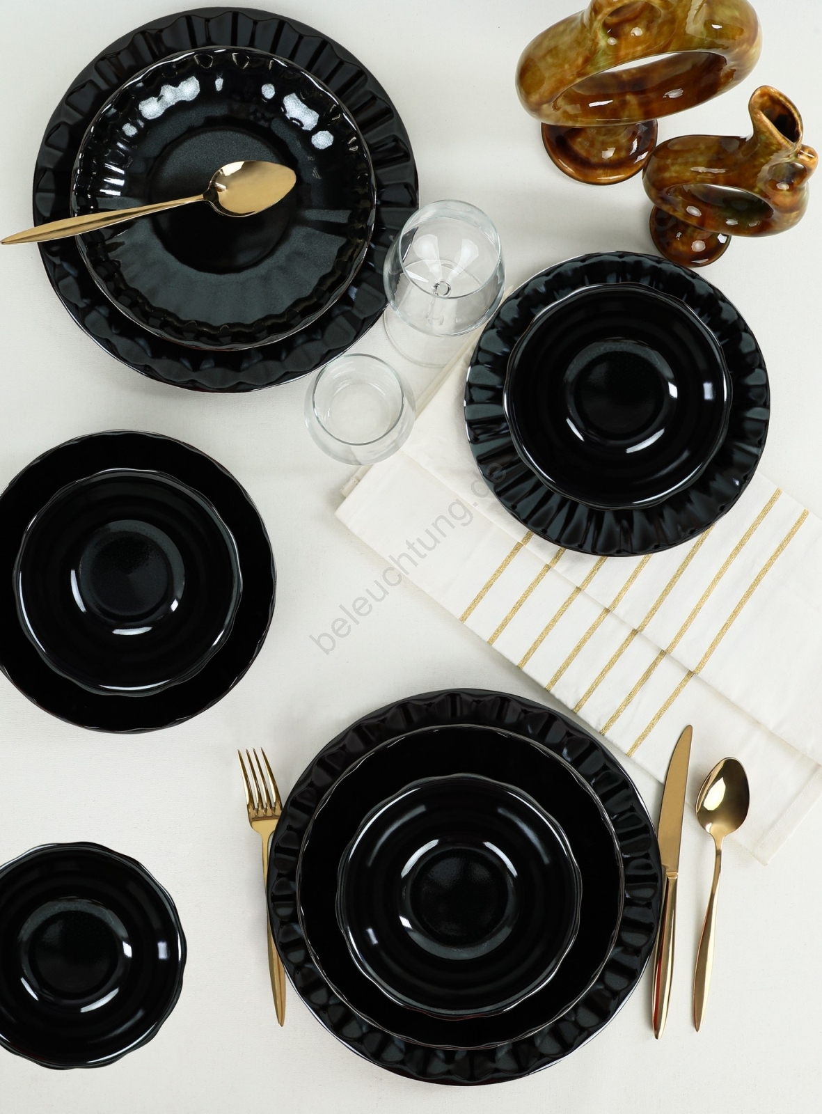 24-teiliges Geschirrset, schwarz/Steingut