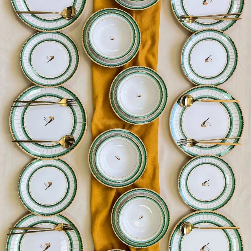 24-teiliges Geschirrset weiß/grün/gold/Keramik