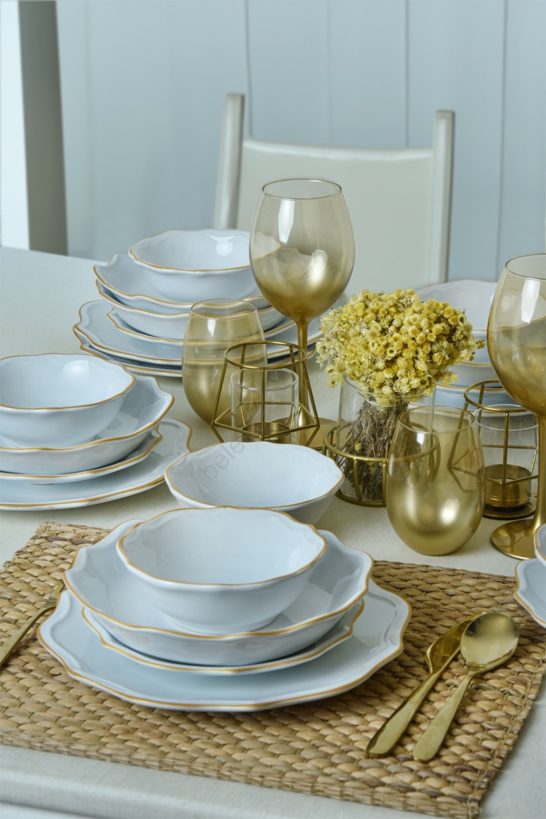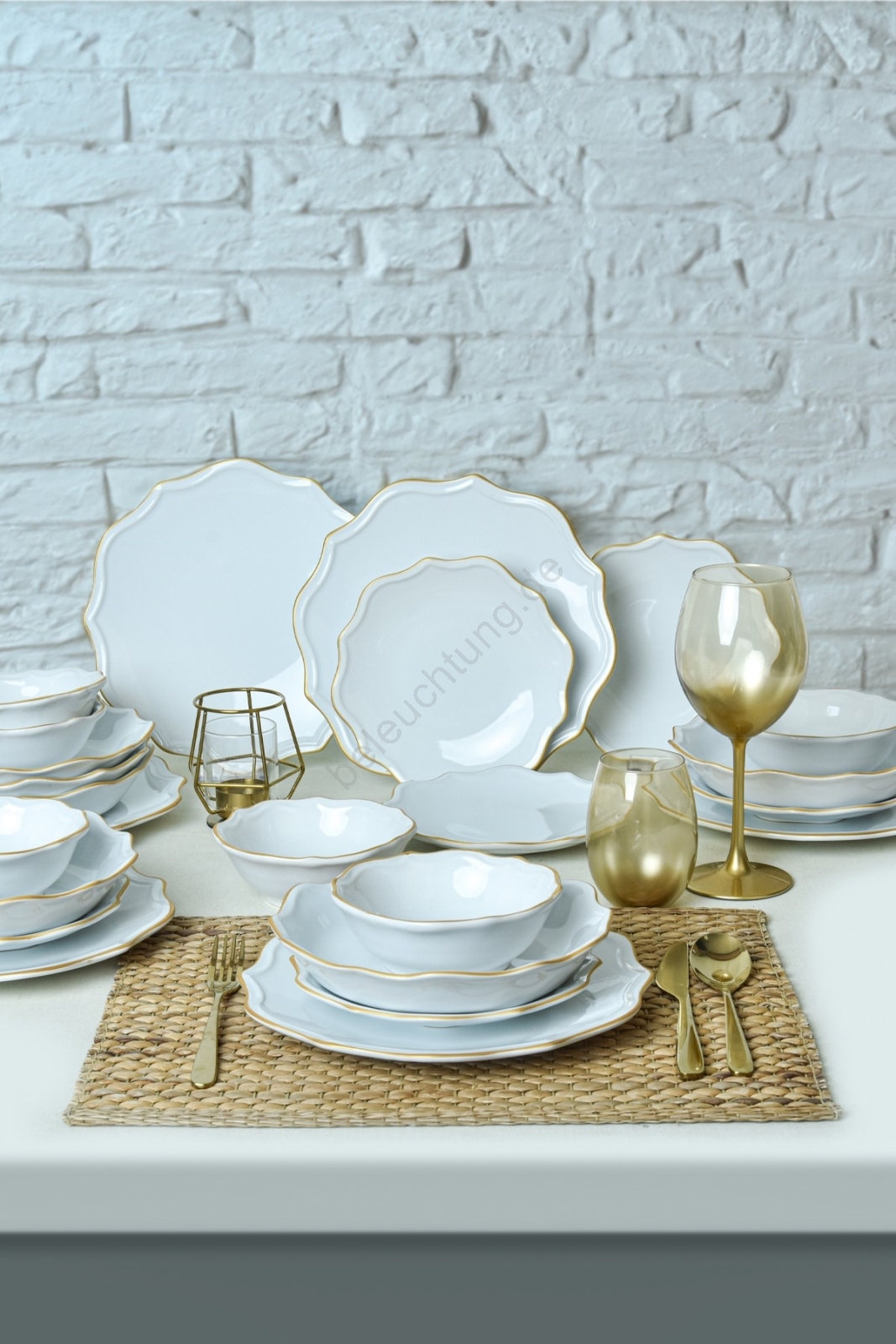 24-teiliges Steingut-Geschirrset in Weiß mit goldenen Akzenten