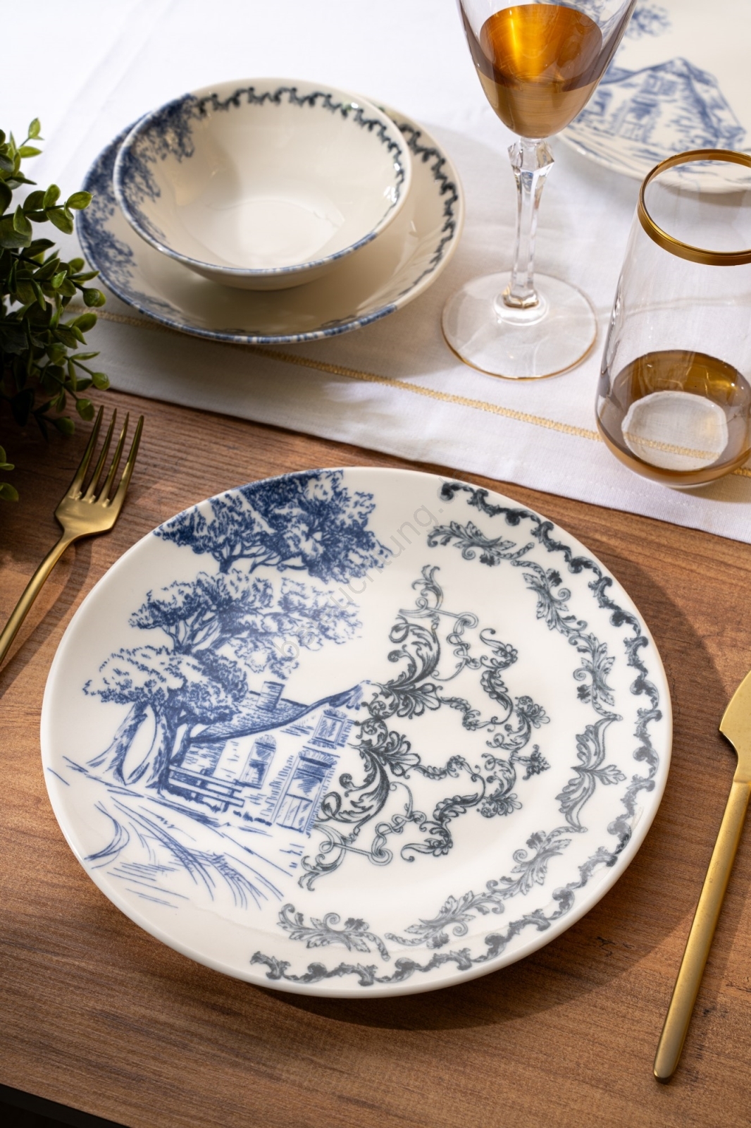 24‑teiliges Tafelservice aus Porzellan, weiß/blau