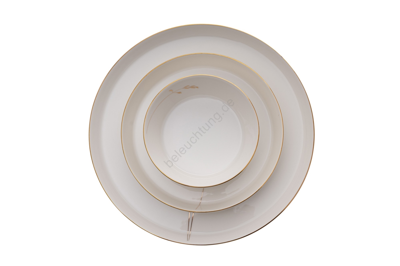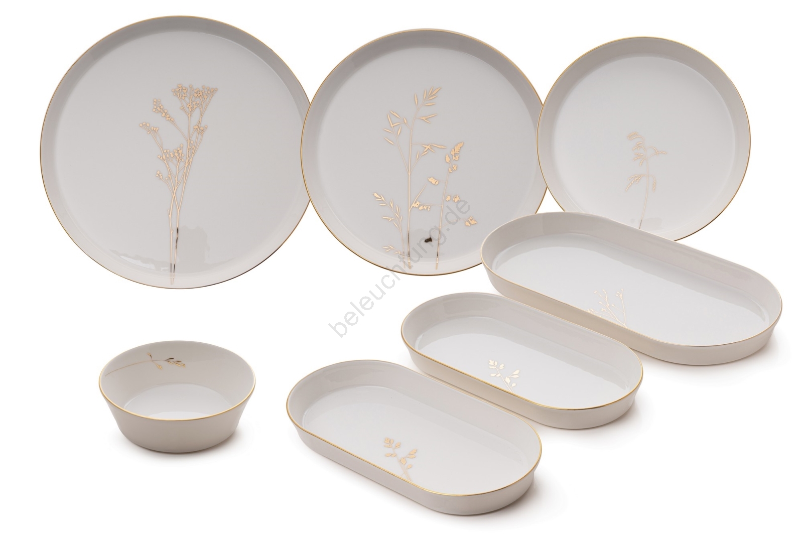 27-teiliges Speiseservice aus Porzellan, weiß mit goldenen Akzenten