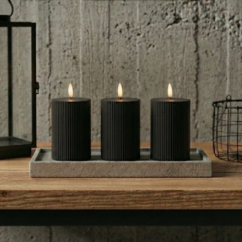 3er-Set LED-Kerze BRILLO LED/2xAA 12,5 cm schwarz + Fernbedienung