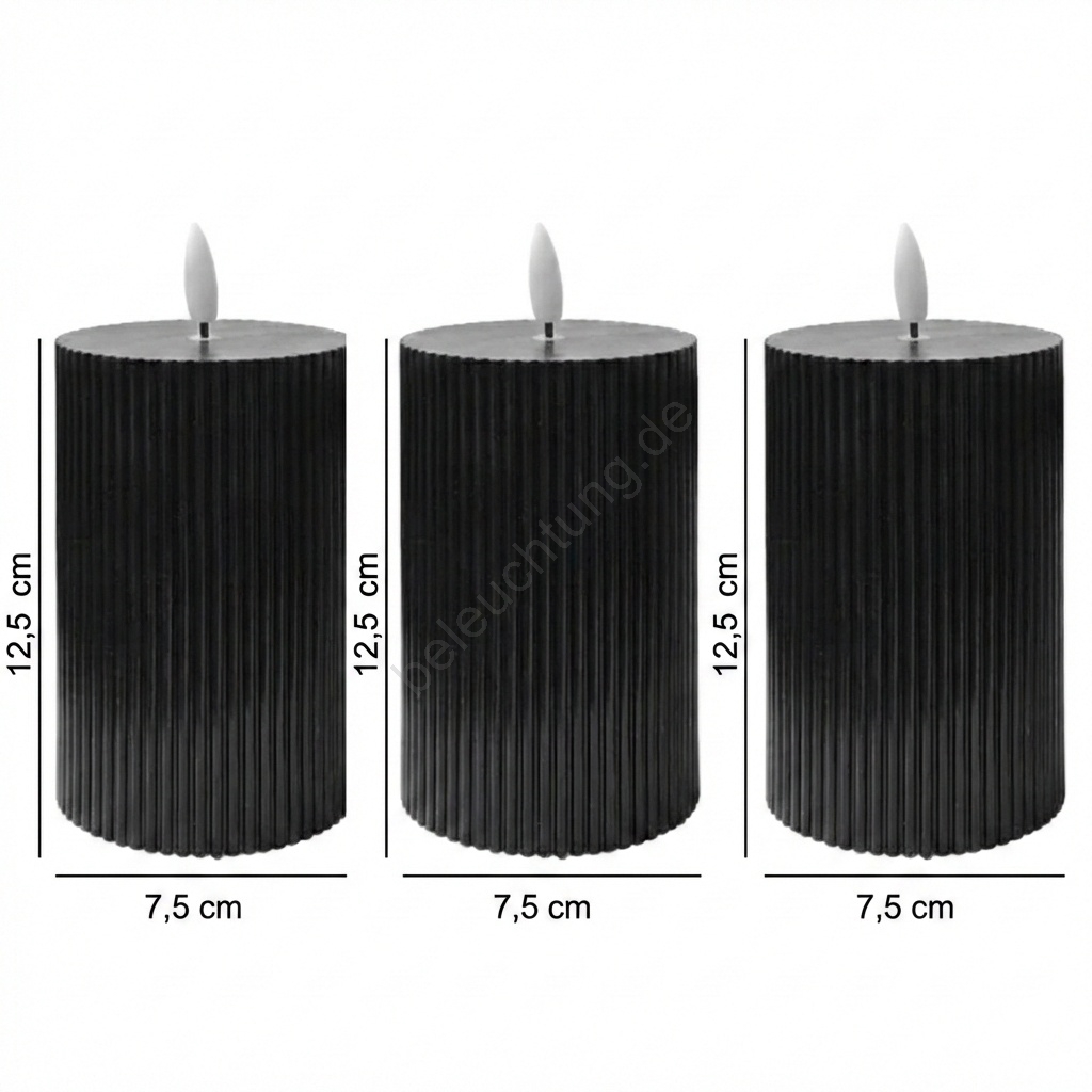 • 3er-Set LED-Kerze BRILLO LED/2xAA 12,5 cm schwarz + Fernbedienung