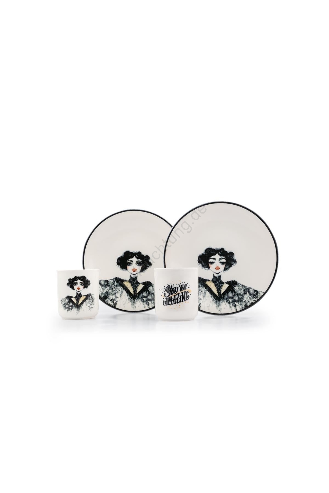 4-teiliges Ess-Set, schwarz/weiß, Porzellan