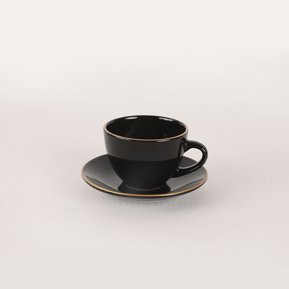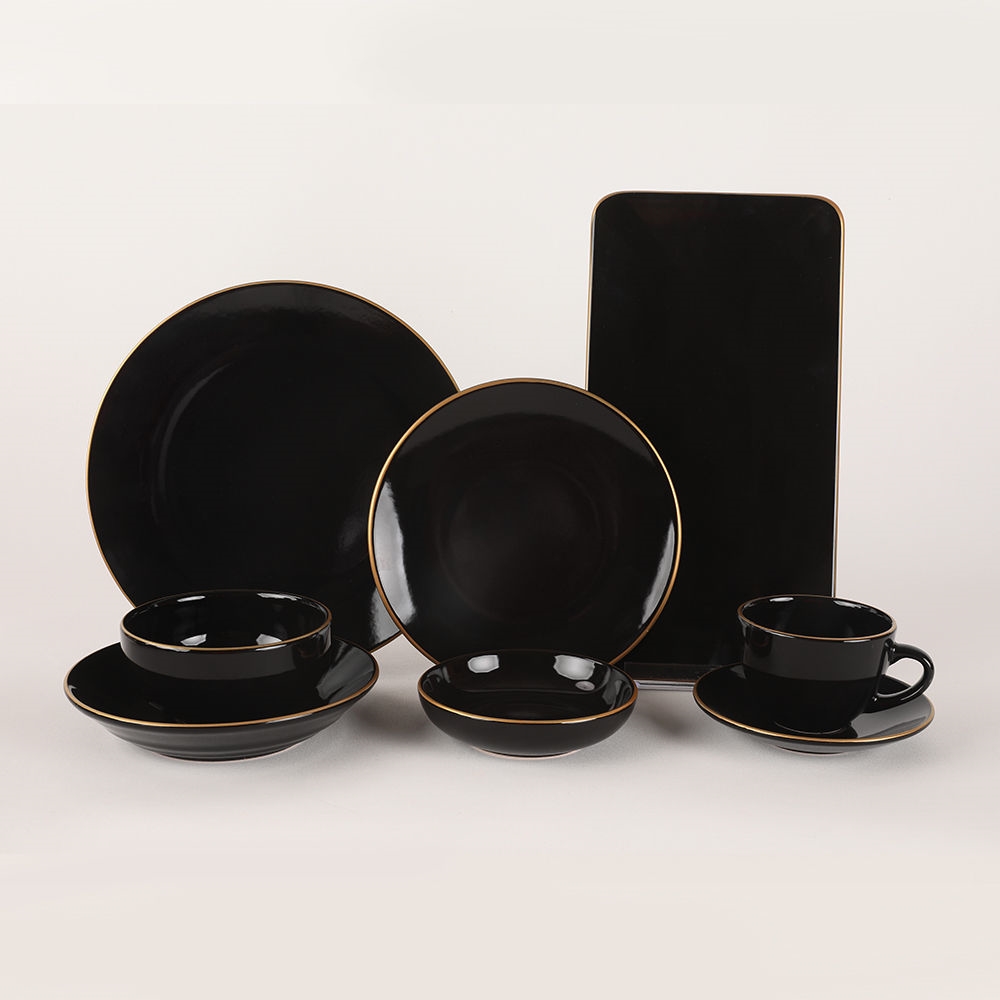 44-teiliges Essgeschirr-Set in Schwarz/Gold aus Steingut