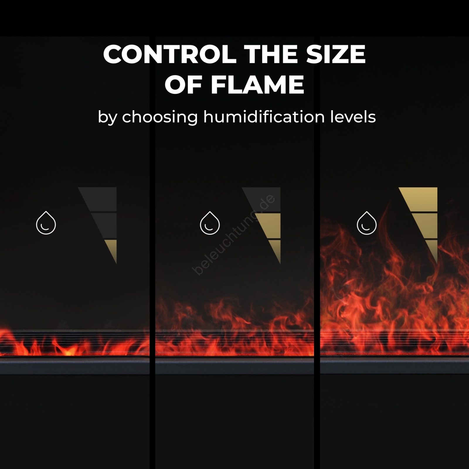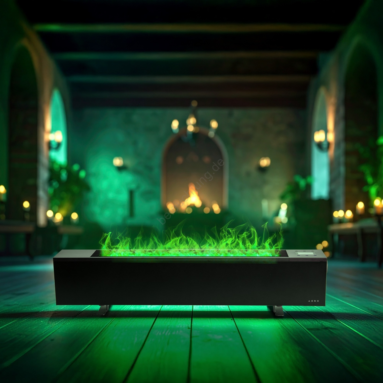 • Verfügt über einen dekorativen „Flammeneffekt“ dank LED-Beleuchtung und Vernebelung, der eine flammenähnliche Atmosphäre schafft, jedoch ohne Feuer und Rauch.