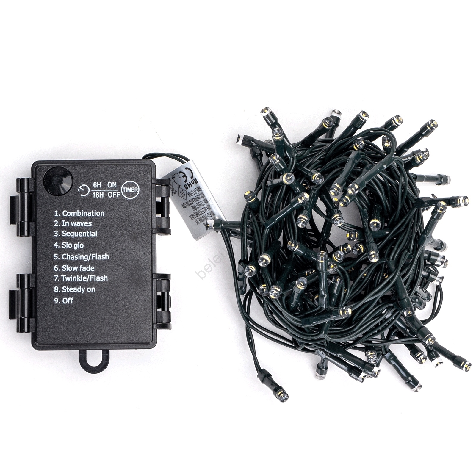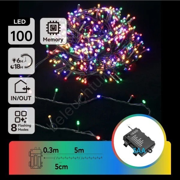 Aigostar - LED-Lichterkette für den Außenbereich, 100 LEDs, 8 Funktionen, 3x AA, 5,3 m, IP44, mehrfarbig