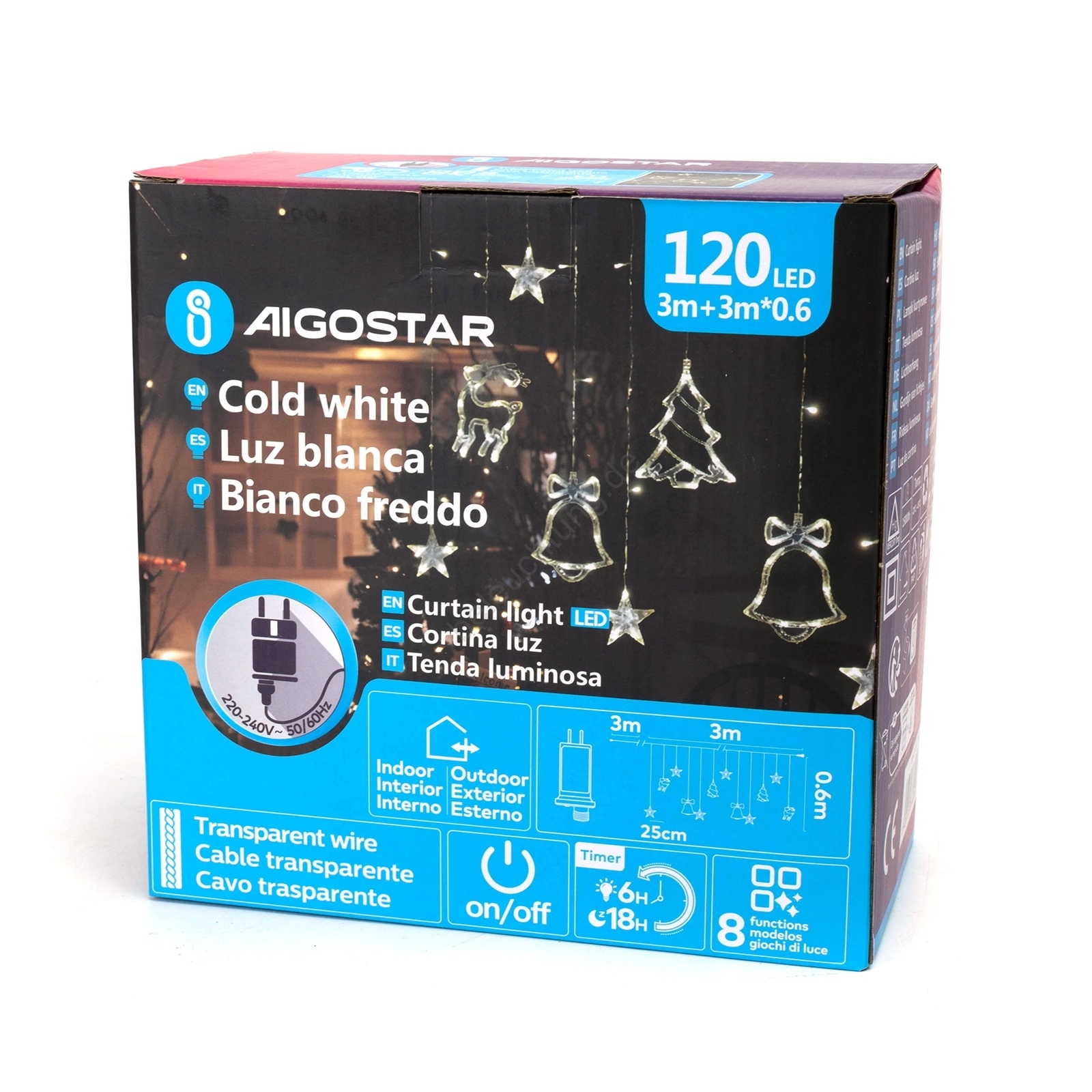 • Aigostar - LED-Außen-Weihnachtslichterkette 120xLED/6W/230V/8 Funktionen 3x0,6m IP44 warmweiß + Fernbedienung
