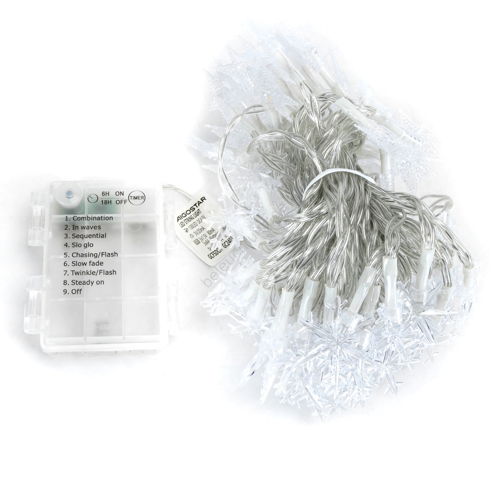 Aigostar - LED-Außen-Lichterkette, 25 LEDs, 8 Funktionen, 3×AA, 2,5 m, IP44, warmweiß, mit Sternen