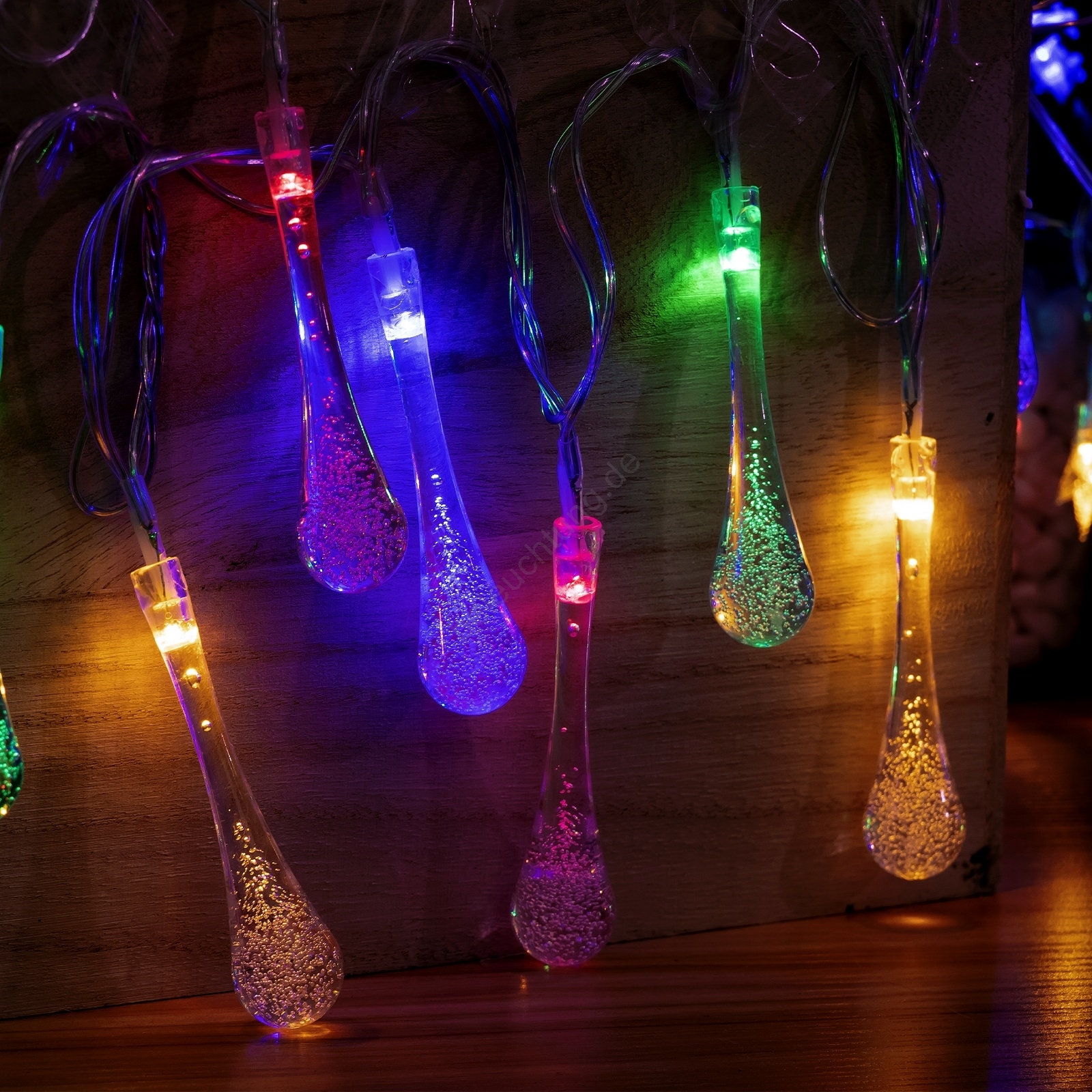 Aigostar - LED-Lichterkette für den Außenbereich, 25 LEDs, 8 Leuchtmodi, 3×AA, 2,5 m, IP44, mehrfarbige Tropfen