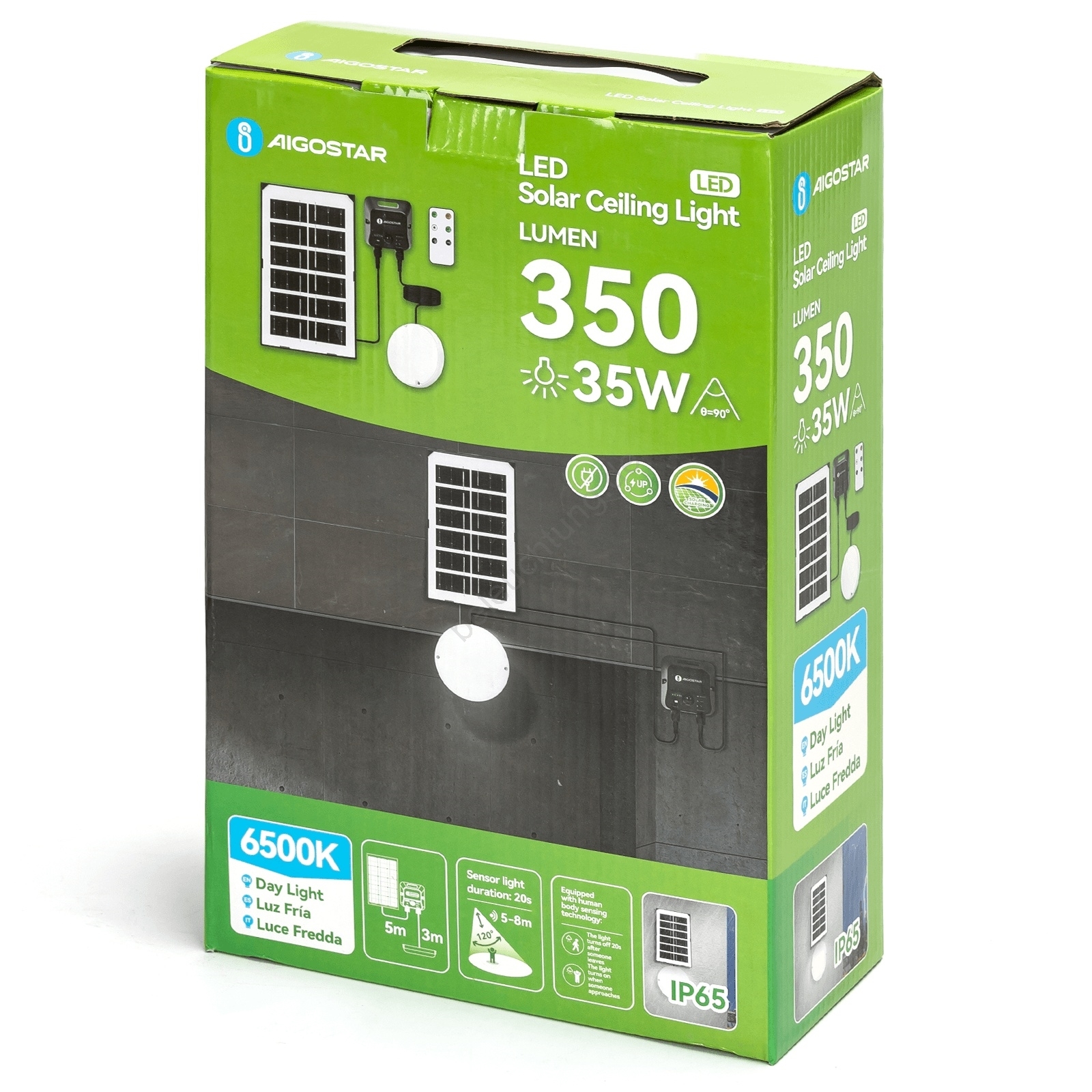 Aigostar - LED-Solar-Deckenleuchte mit Sensor LED/35W/3,7V 3000 mAh IP65 + Fernbedienung
