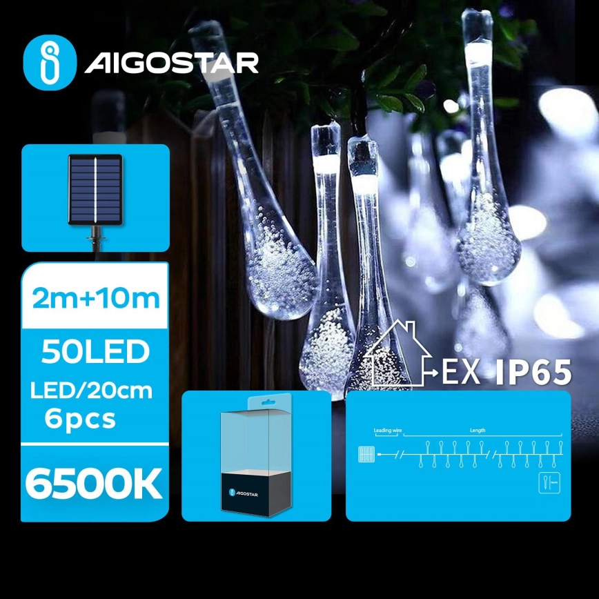 Aigostar - LED Solar-Dekorationskette 50xLED/8 Funktionen 12m IP65 kaltweiß 800 mAh