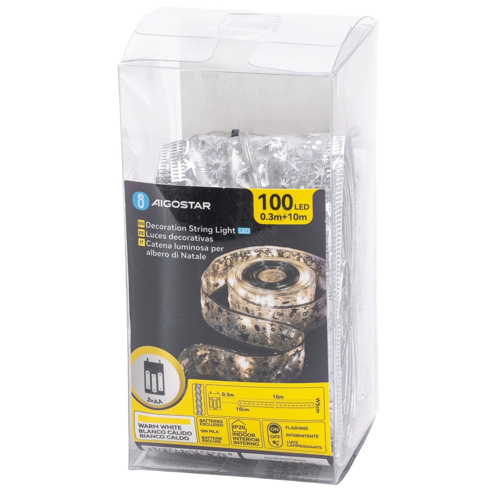 • Aigostar - LED-Lichterkette 100xLED/3xAA 10 m warmweiß silberfarben