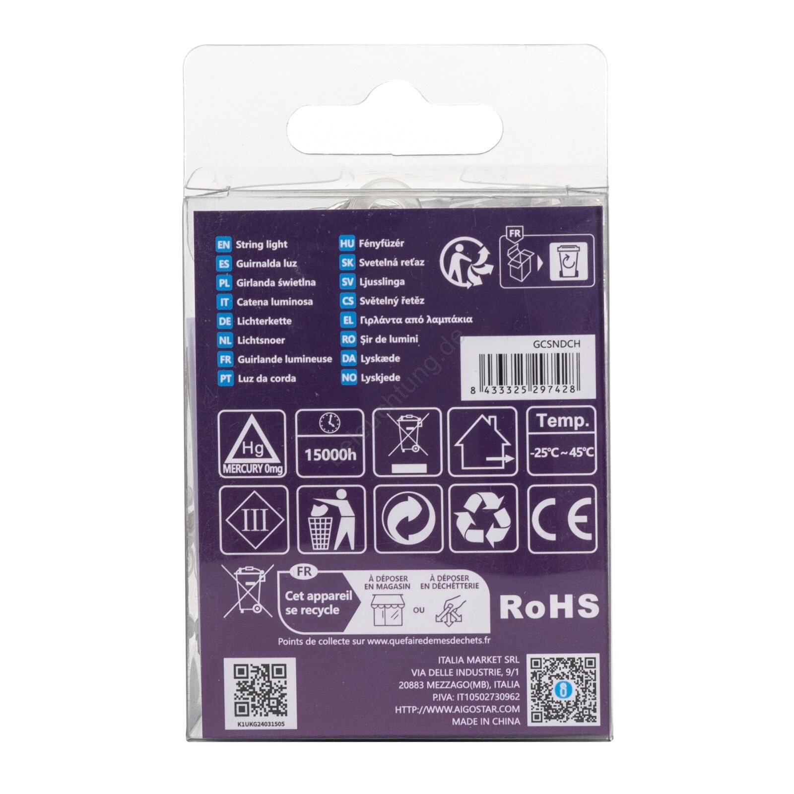 Aigostar - LED-Weihnachtslichterkette für den Außenbereich 50xLED/8 Funktionen 3xAA 5,3m IP44 kaltweiß