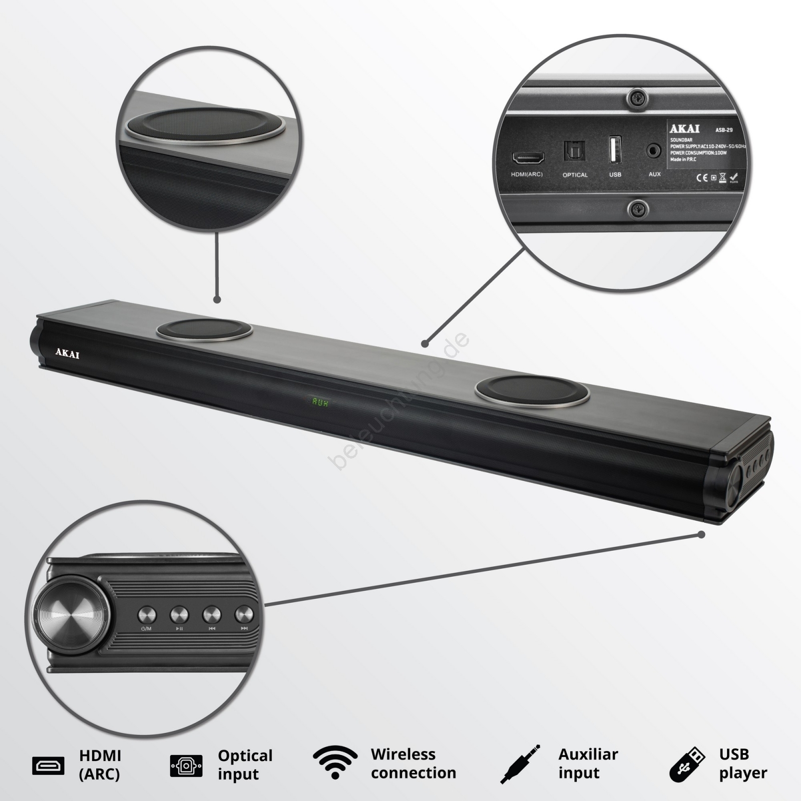 AKAI ASB-29 - Soundbar mit aktivem Subwoofer 120W/230V + Fernbedienung