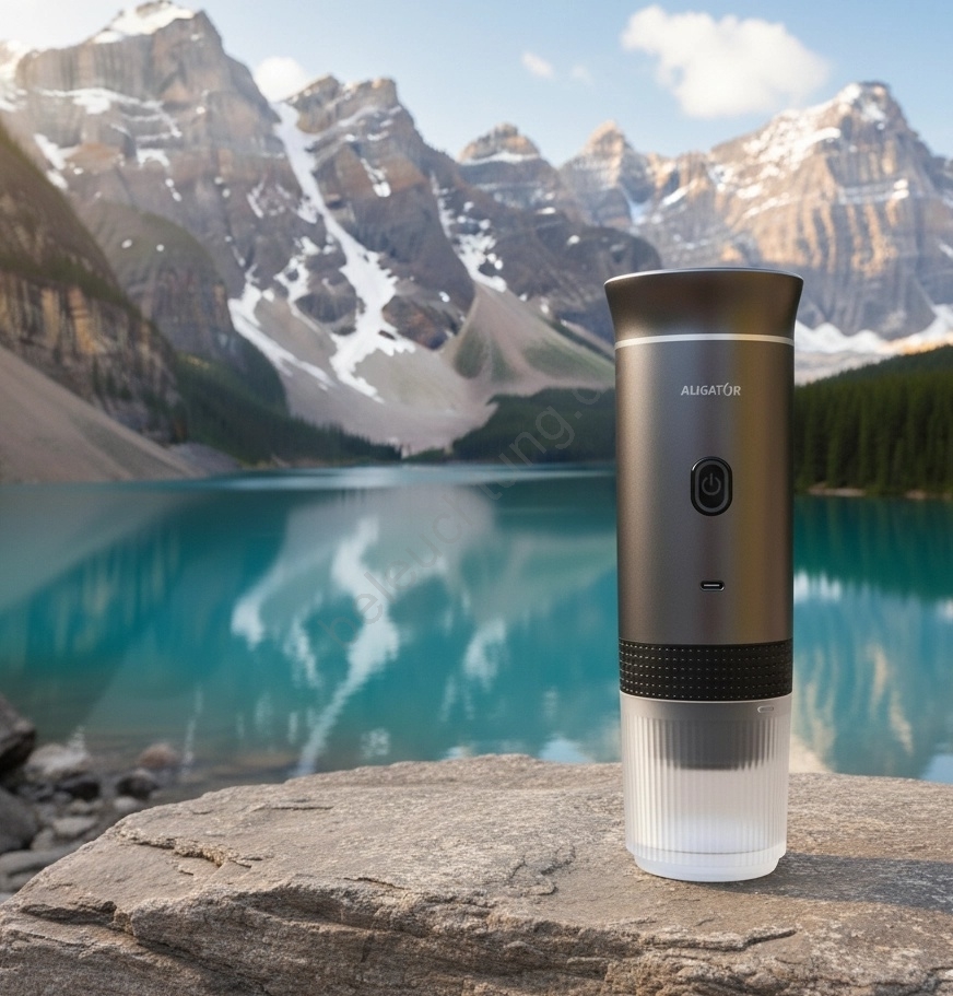 Aligator ACM002 - Tragbare, wiederaufladbare Reisekaffeemaschine PortaCaffé 3‑in‑1, 72 W / 7500 mAh, grau