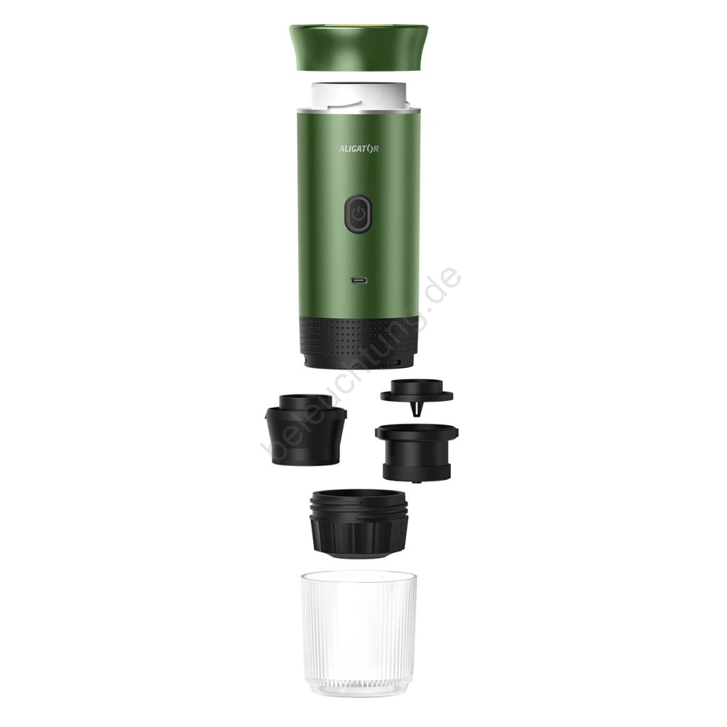 Aligator ACM003 - Tragbare wiederaufladbare Reisekaffeemaschine PortaCaffé 3-in-1 72W/7500 mAh grün