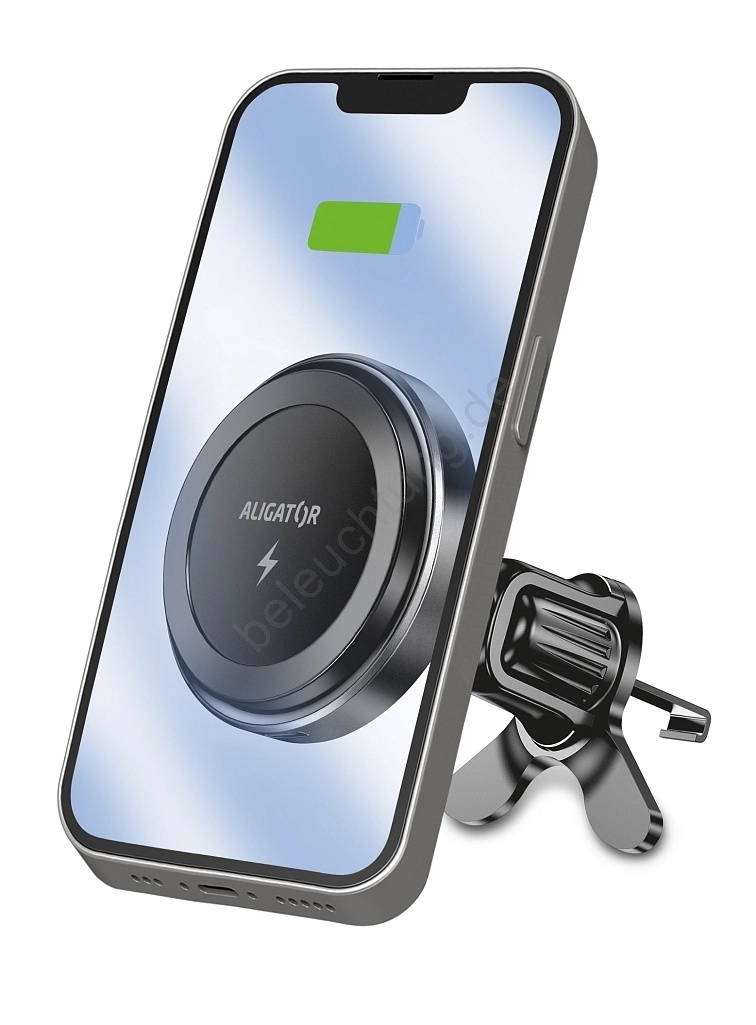 Aligator AMS05BK - magnetische Autohalterung für Smartphones mit kabellosem Qi-Laden (15 W) und MagSafe, schwarz
