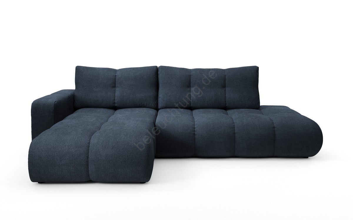 Ausziehbare, linksseitige L-Eck-Polstergarnitur ALMADA mit Stauraum, blau