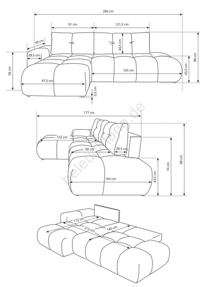 • Dank der Schlaffunktion (Typ DL) lässt sie sich leicht in einen komfortablen Schlafbereich verwandeln.
