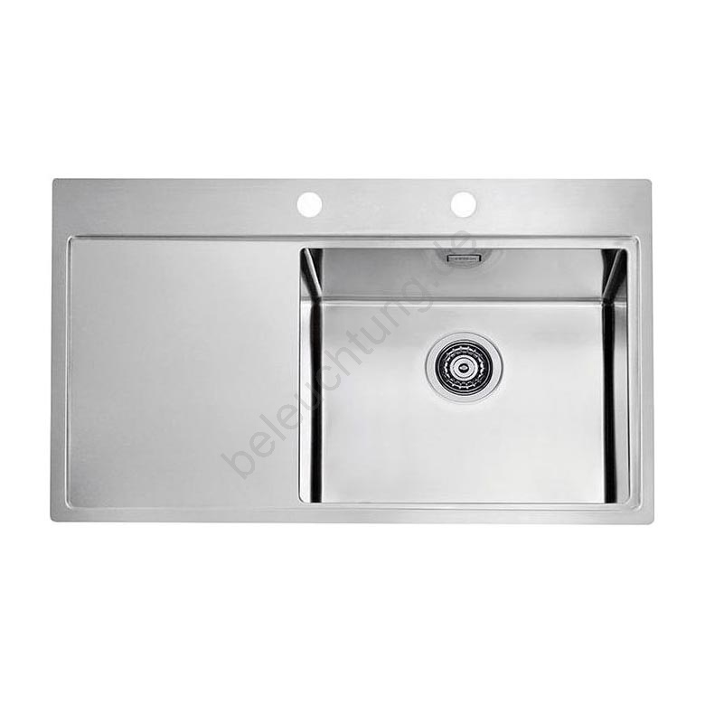 • Lieferumfang: Edelstahlspüle, Befestigungen und Dichtungen, Siebventil 3 1/2, Siphon mit Anschluss für die Spülmaschine, Exzenterbedienung für den Ablauf.