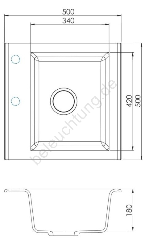 • Lieferumfang: Granitspüle, Siebkorbventil 3 1/2, Siphon mit Anschluss für die Spülmaschine, Spültischarmatur, Anschlussschläuche, Montageset.