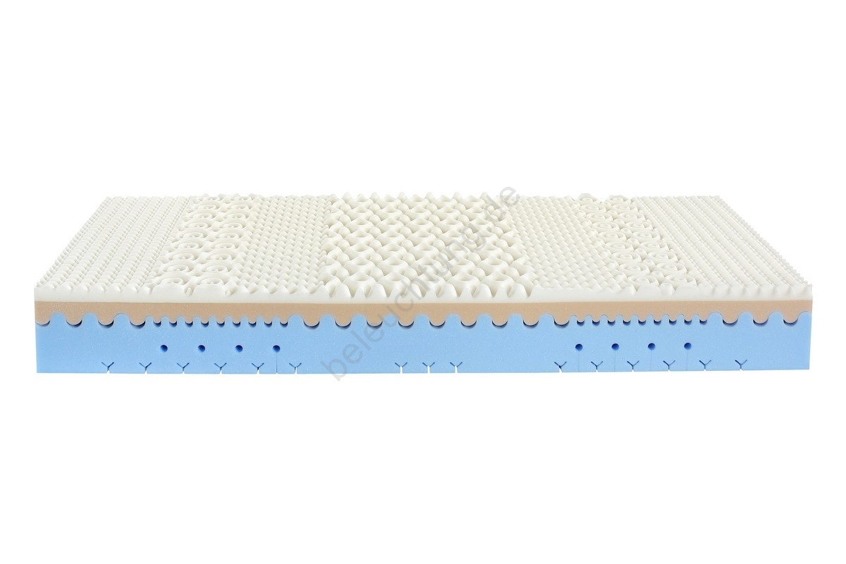 • Die Matratze besteht aus kaltgeformten, elastischen Schäumen mit nicht verleimtem Kern.