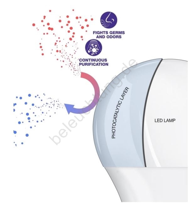 • Das sichtbare Licht, das von der Lampe erzeugt wird, aktiviert die Nanobeschichtung.