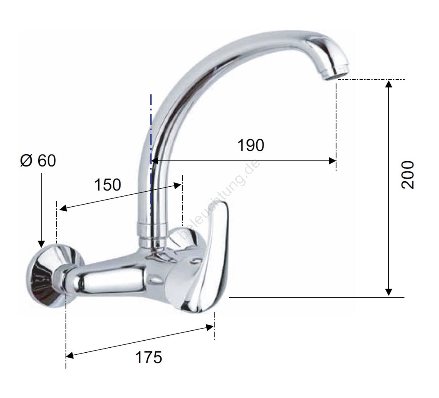• Diese Wandarmatur ist aus Messing gefertigt und besitzt eine hochglanzverchromte Oberfläche.