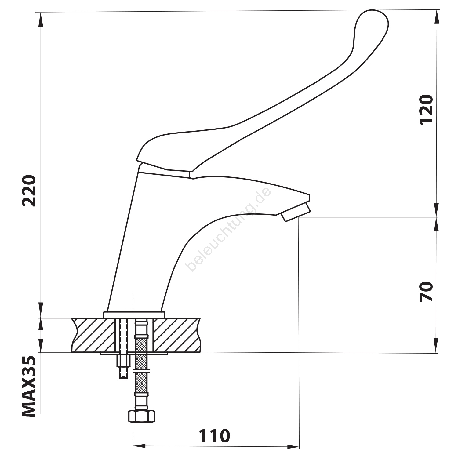 • Die Armatur ist aus Messing gefertigt und verfügt über eine verchromte Oberfläche.