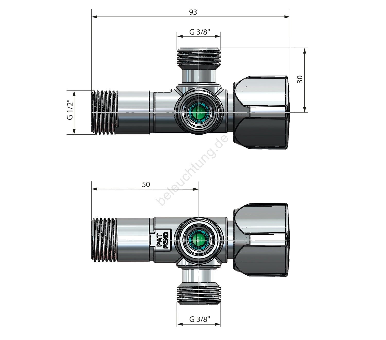 • Das Eck-Kombiventil a-80 verfügt über zwei Wasseranschlüsse.