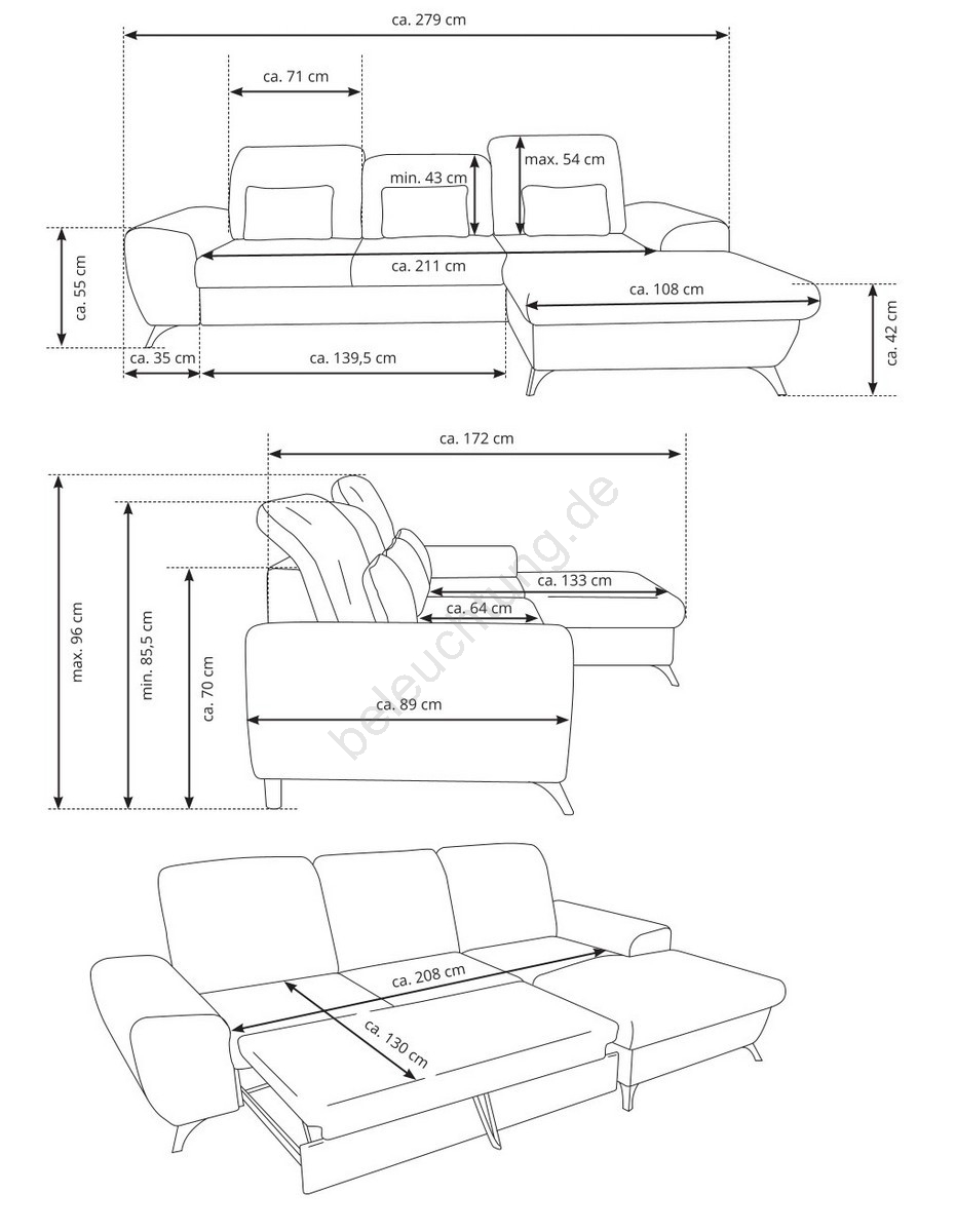 • Dank der Schlaffunktion (Delfin-Typ) lässt sie sich einfach in eine komfortable Schlafgelegenheit verwandeln.