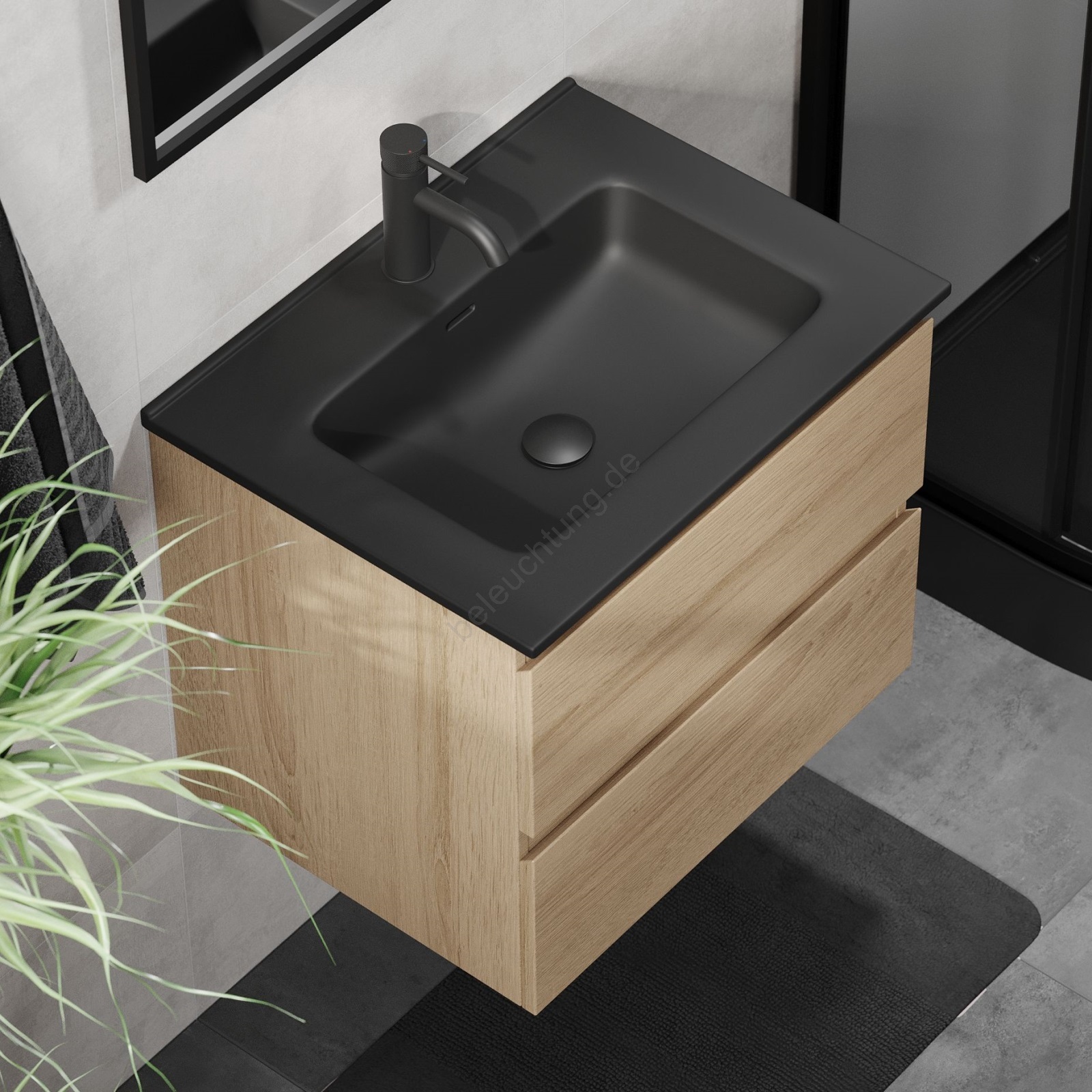 Badezimmerschrank mit Waschbecken KENWOOD 61 cm Eiche/Schwarz