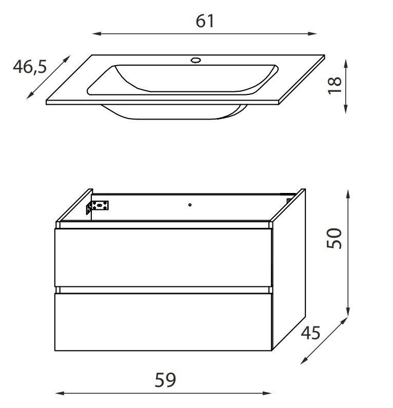 • Waschtischunterschrank mit integriertem Waschbecken KENWOOD, 61 cm, weiß