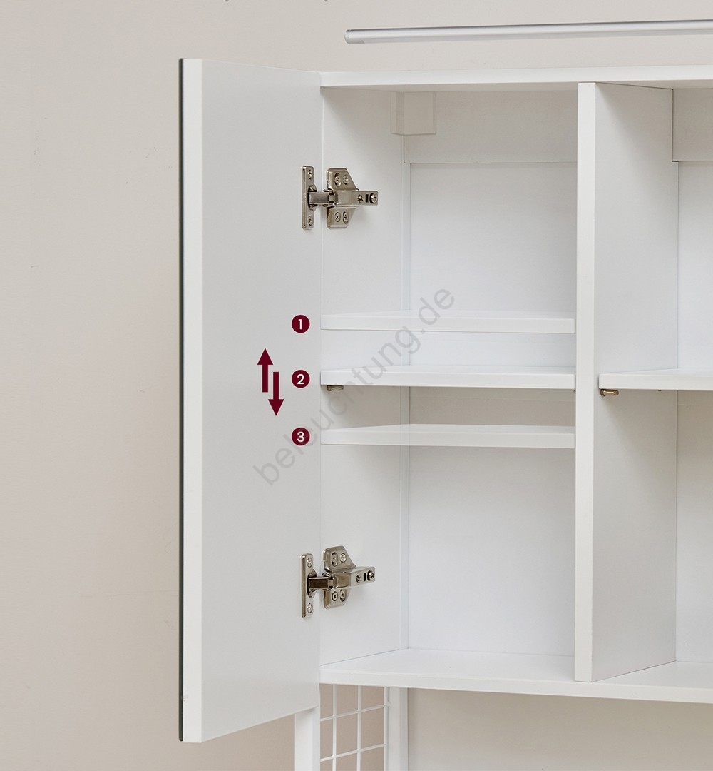 • Die Inneneinlegeböden halten Ihre Kosmetik- und Hygieneartikel stets griffbereit.