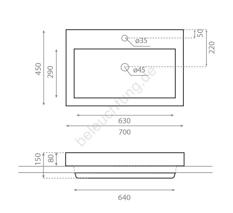 • Das Waschbecken kann teilweise unter die Waschtischplatte eingebaut werden.