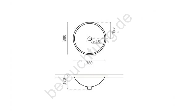Bathco 0052 - Einbauwaschbecken CERDENA, Durchmesser 38 cm, Porzellan/weiß
