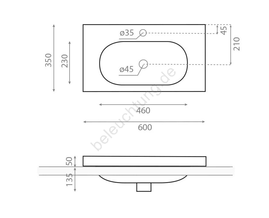• Das Waschbecken kann halbuntergebaut montiert werden.