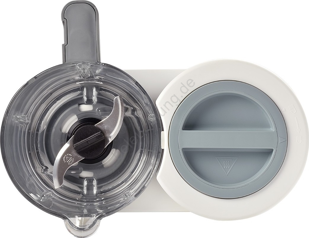 • Um die Speisen anschließend zu pürieren, geben Sie die gegarten Zutaten einfach aus dem Einsatzkorb in den transparenten Hauptbehälter und mixen sie – je nach Alter des Kindes zu einem feinen, glatten Brei oder zu einer gröberen Konsistenz mit Stücken.
