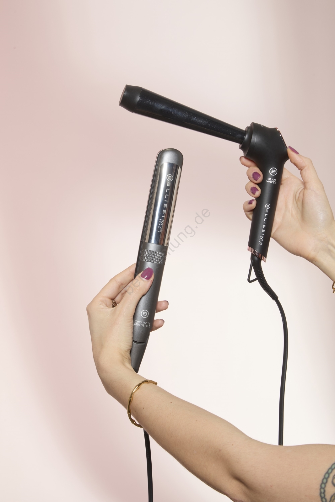 • Die Keramikbeschichtung, angereichert mit Diamant-Mikropartikeln und Keratin, schützt das Haar.