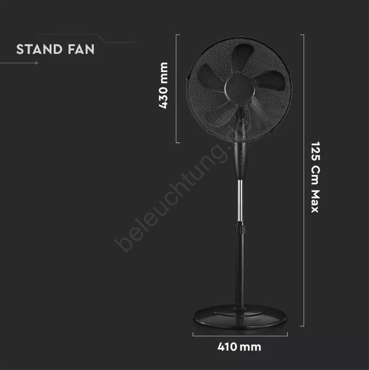 • Maximale Höhe des Ventilators: 1,25 Meter.