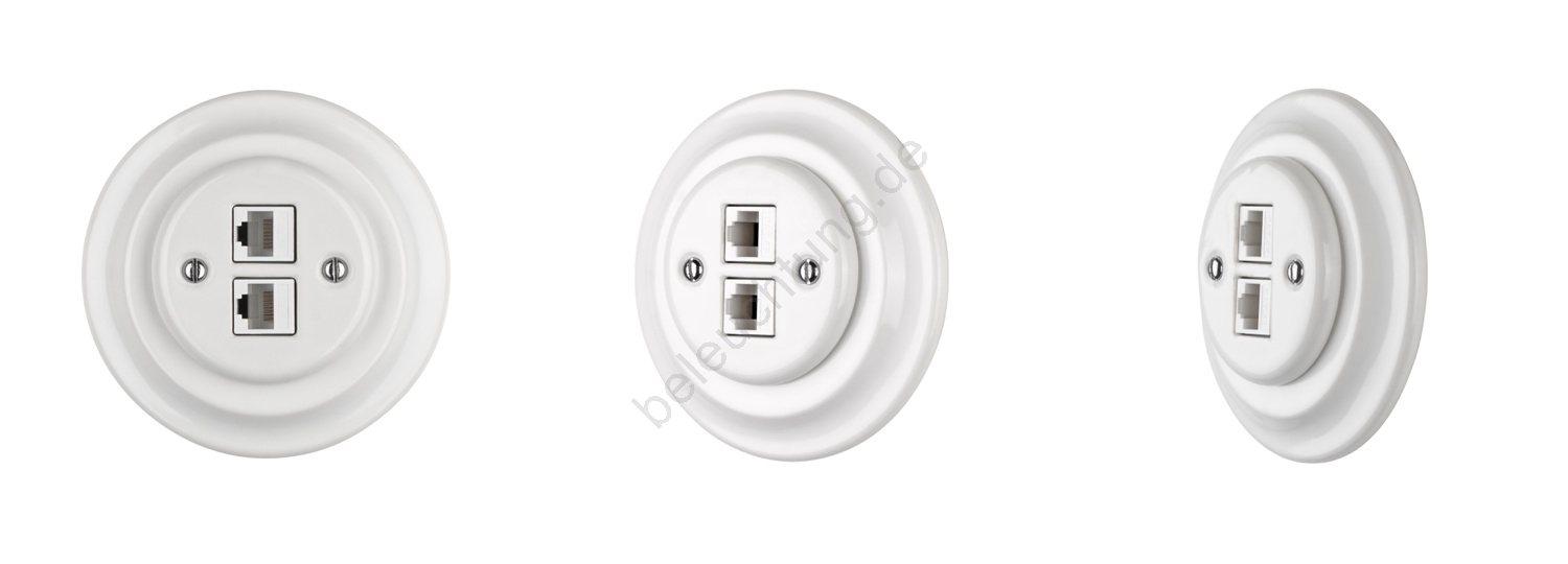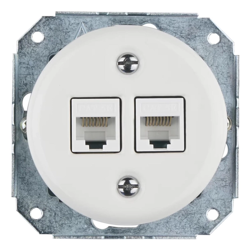 • Porzellan-Ethernetdose, 2x CAT.5E, 2x RJ45.